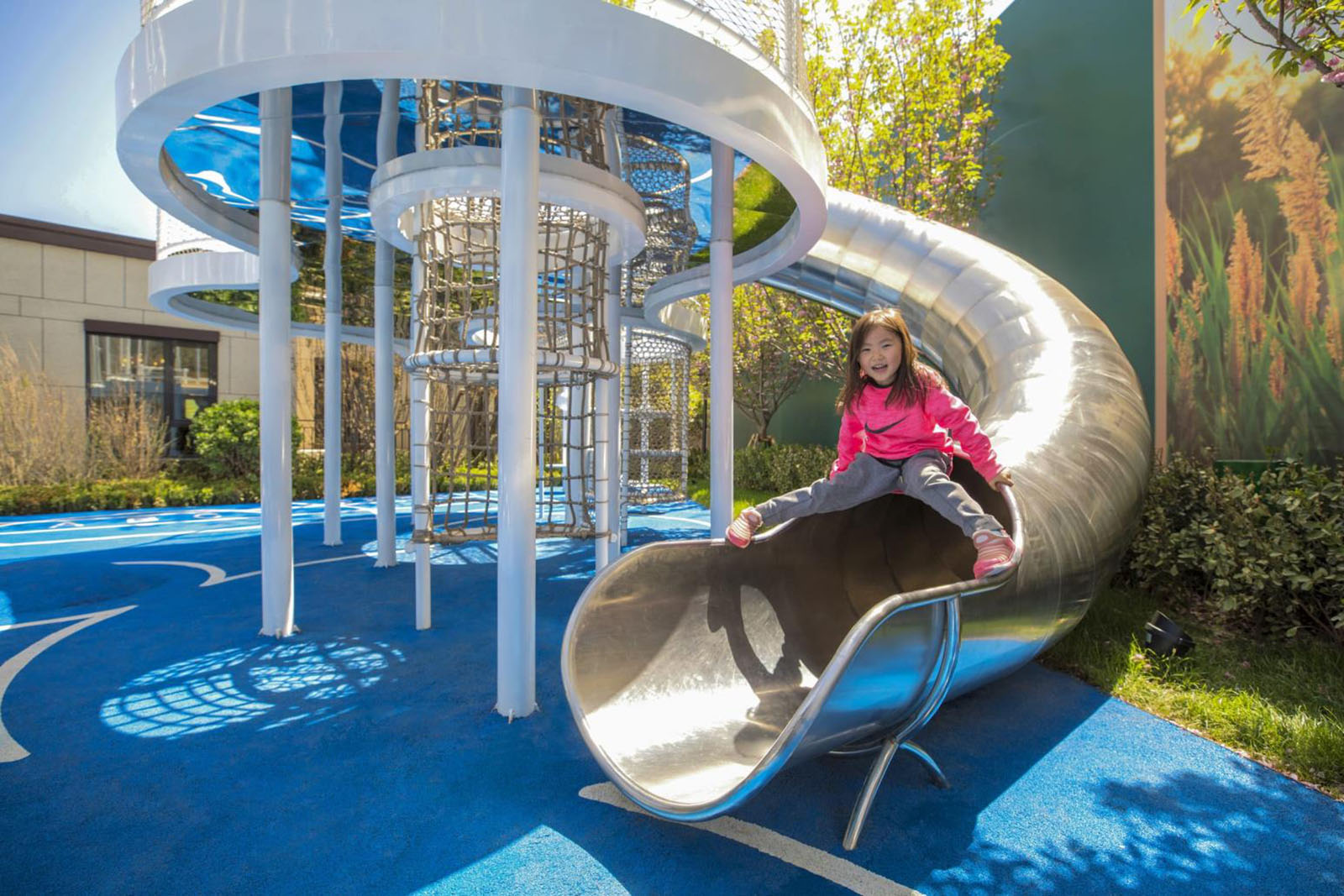 特別設(shè)計(jì)的云鏡主題滑梯為主景,讓兒童感受云與天空倒影的幻夢鏡光。