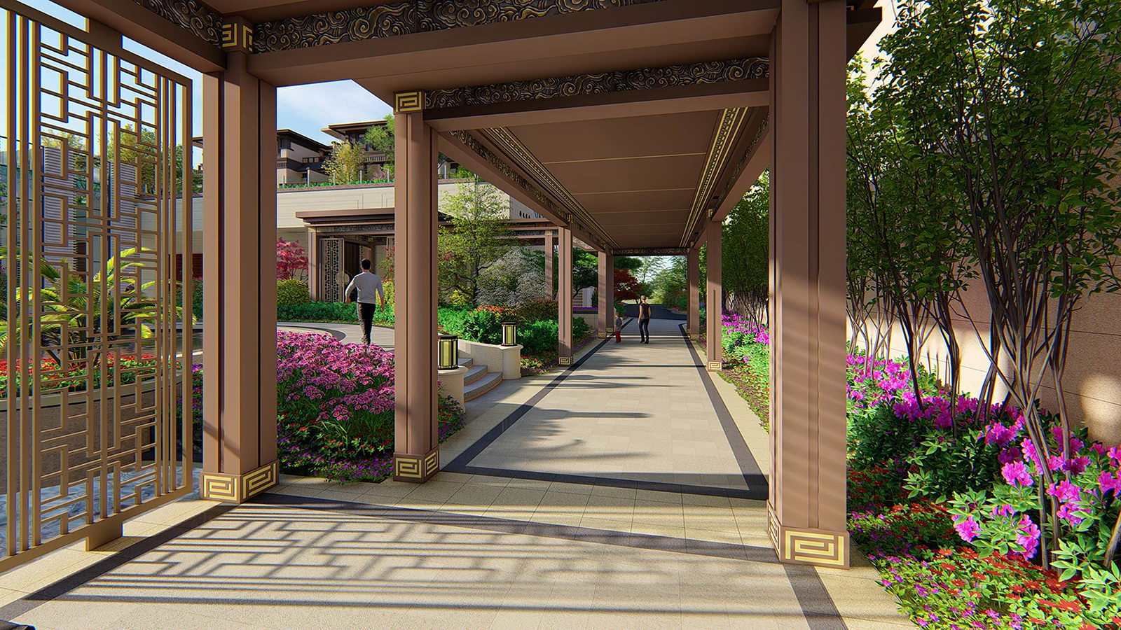 雍華府示范區前場景觀旨在賦予項目的精神展現力,要求景觀不光把東方人文融入到設計情景之中,而更重要的是,使客戶觸動于泱泱雍華府的寬廣與胸襟,氣魄與神定,為業主呈現新干最品質、最高端大宅的景觀奏章與禮獻。因此,在設計過程中,避免過于繁復的空間劃分,冗長迂回的流線組織,提倡景觀欲揚則揚,無藏勿抑,開門見山,大氣現世。